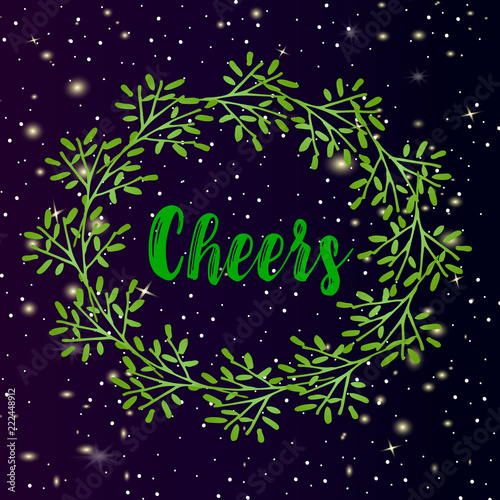 Fototapeta premium Christmas vector postcard - Christmas wreath and snow on a dark gradient ony...