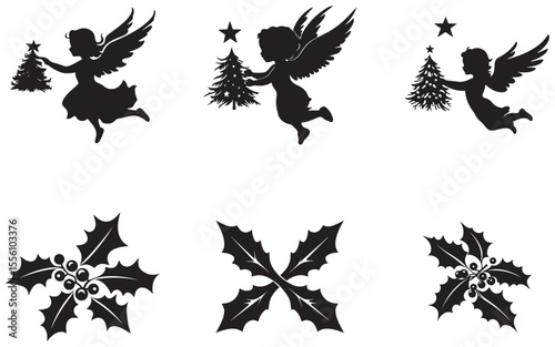 © ABU SAYED, Fototapeta premium christmas vector silhouettes of wings