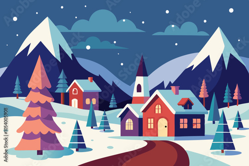 © Nayon Chandro Barmon, Naklejka premium Christmas village in vintage style vector illustration