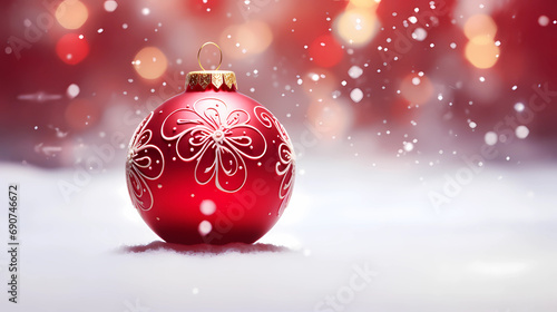 Fototapeta premium Christmas Wallpaper - Red Ornament in Snow | Beautiful Vibrant Background