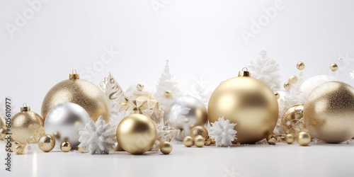 Fototapeta premium Christmas white background with baubles, Generative ai
