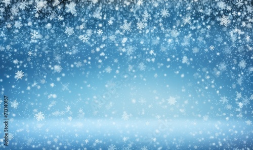 © Daniela, Fototapeta premium Christmas white snowflakes in the blue sky at a window shutter backgrounds. Freezing winter holiday, blue snowflakes background.