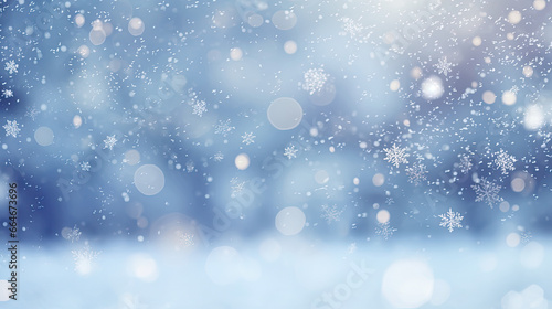 Obraz premium Christmas winter background with snow and blurred bokeh.Merry christmas and...