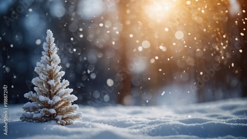 Naklejka premium Christmas winter background with snow and blurred bokeh,Merry christmas and...