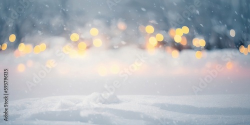 Naklejka premium Christmas winter blurred background, generative ai image of snowy landscape with festive glow