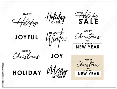 © Mizuho, Fototapeta premium Christmas, Winter Holiday Typography Text Graphic Set. Minimalist modern typography. Vector multiple designs. Holiday campaign logo, email marketing message, store sign and banner, invitation card
