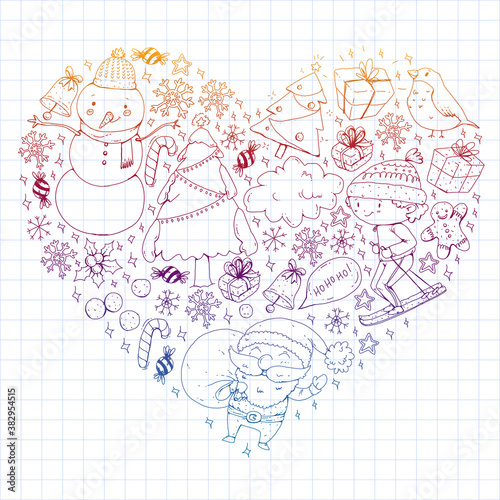© helen_f, Fototapeta premium Christmas winter vector background with children. Kids vacation and sport.