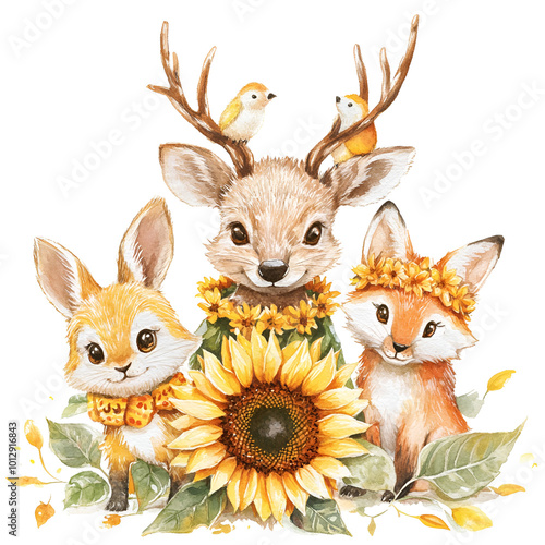 © Mr, Fototapeta premium Christmas with Sunflowers Clipart Vector Illustration
