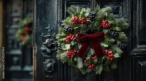 Naklejka premium Christmas Wreath Door Decor, Holiday Decoration Ideas