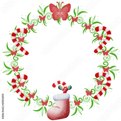 Naklejka premium Christmas wreaths with flowers leaf wreaths,