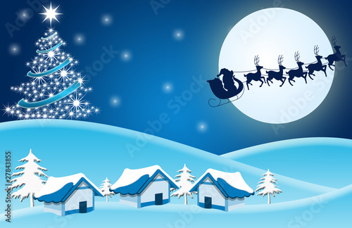Fototapeta premium Christmas, xmas, Weihnachtsbaum, Santa Claus blau weiss