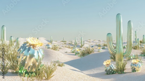 © Kopgz-41, Fototapeta premium Chromatic Dunes: A Surreal, 3D Desert Landscape in Augmented Reality