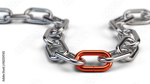 © Sashkin, Obraz premium Chrome chain with a red link. 3d illustration