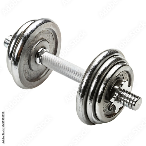 © SIAM, Naklejka premium Chrome dumbbell isolated on white background