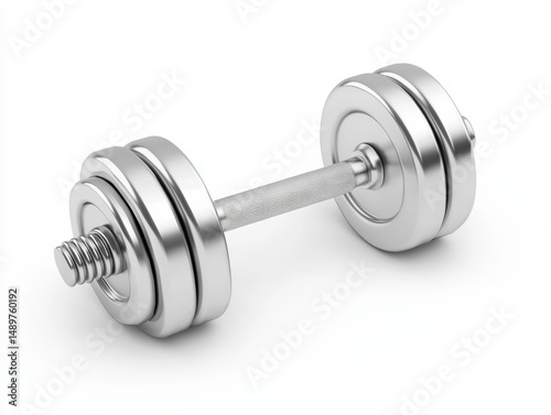© Panithi, Naklejka premium Chrome Dumbbell Isolated on White Background for Fitness and Exercise