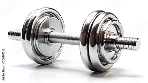 © Mary Popovych, Naklejka premium Chrome Dumbbell on White Background