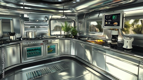 © TJAYZ, Obraz premium 71. Chrome kitchen with 60s design and digital cooking interface