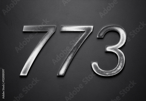 © Fayazravat143, Naklejka premium Chrome metal 3D number design of 773 on grey background.