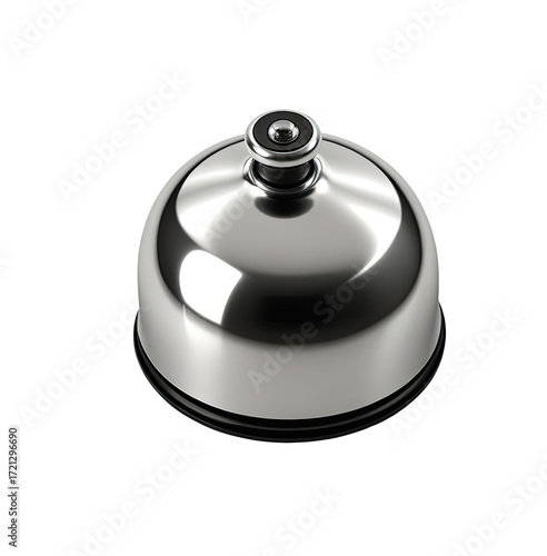 © Shin, Fototapeta premium Chrome service bell, reception desk, office, background blur, website