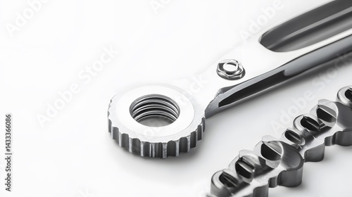 © zenedine, Obraz premium Chrome Tool Closeup with White Background.