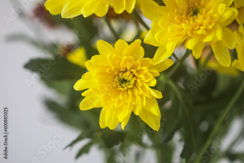 Fototapeta premium Chrysanthemum bouquet on the light soft background.