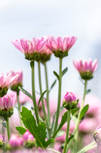 © Pituk, Fototapeta premium Chrysanthemum pink flowers in the farmer's garden