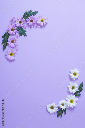 Fototapeta premium chrysanthemums flowers on purple paper background