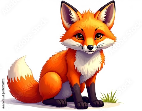© Supharb, Obraz premium Chubby baby fox curled up in a nap, with a peaceful face and fluffy fur, isolated on white.