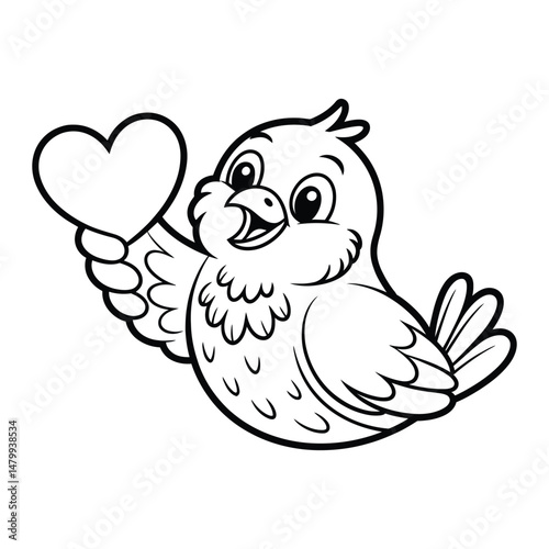Fototapeta premium Chubby bird holding heart Coloring Page, Silhouette, Vector, Illustration, Icon, Logo, White Background.
