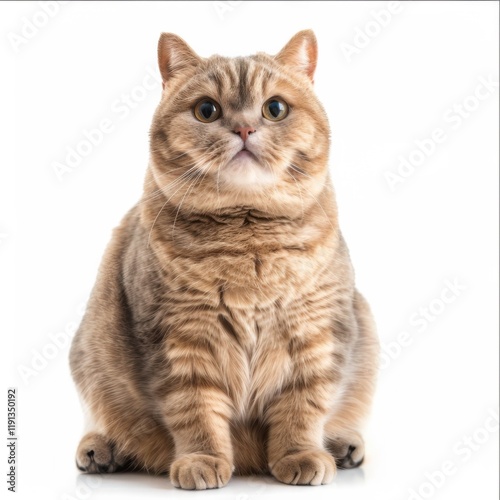 Fototapeta premium Chubby british shorthair cat on white studio background