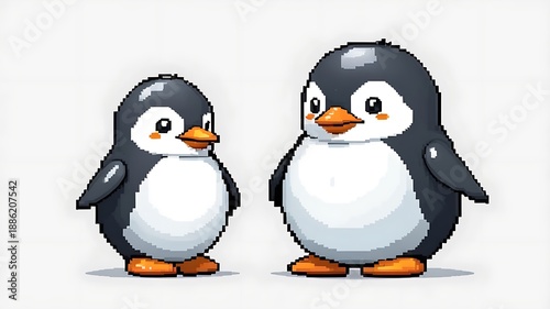 © Agustian, Fototapeta premium Chubby penguin in pixel art, 2D 8-bit sprite, white background