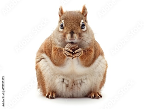 Obraz premium Chubby Squirrel Holding Acorn on White Background Isolated Concept