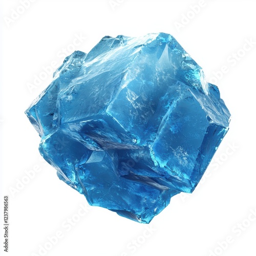 © Svitlana, Fototapeta premium Chunk of blue ice with a rough crystalline structure, centered on a clean white background