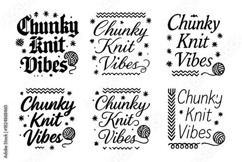 Fototapeta premium Chunky Knit Styles. Chunky knit vibes. Create a calligraphy lettering illustration of the phrase: Chunky knit