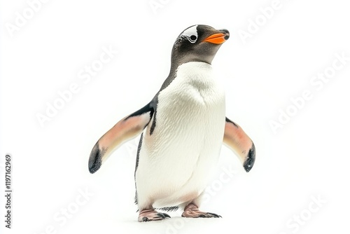© Chayna, Obraz premium Chunky Penguin Waddling Forward With Flippers Against Pure White Backdrop