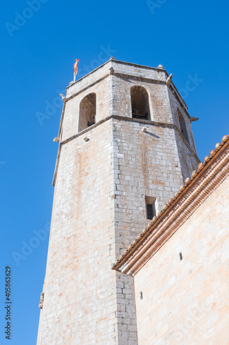 © Julien, Fototapeta premium Church and Convent of the Augustines ("Convent De Les Agustines" in spanish). Beautiful bell tower from a low angle.
