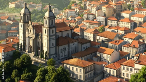© KOOLAIDMAN100X, Fototapeta premium Church and town aerial view