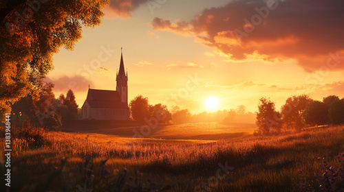 © ADIFERI, Fototapeta premium Church at Sunrise (4)