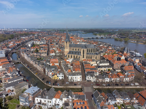 Fototapeta premium Church 'Bovenkerk' in historical city Kampen in the Netherlands. Aerial