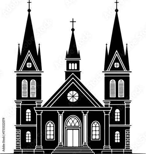 © Print, Fototapeta premium church building black silhouette Vector