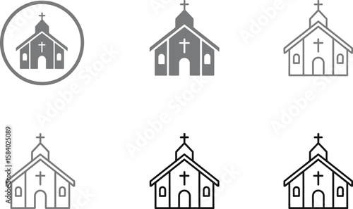 Fototapeta premium Church building icons showcase faith and community in a simple, clean vector...