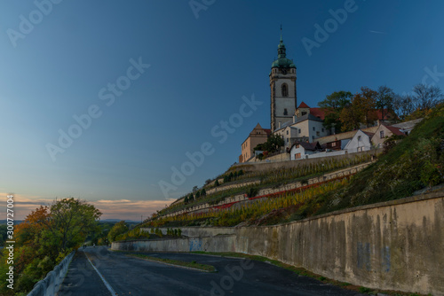 Fototapeta premium Church castle and old houses in old town Melnik in central Bohemia