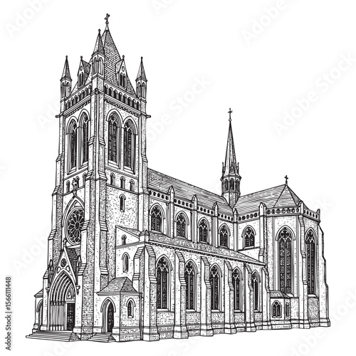 Fototapeta premium church Cathedral Vector Engraving Illustration