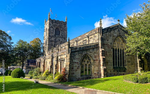 Fototapeta premium Church Holy Trinity stands at the top of the High Street, by the castle, in the beautiful market town of Skipton - the gateway to the Yorkshire Dales.