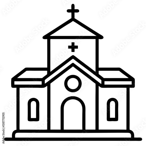 Obraz premium Church Icon Outline on White Background Coloring Book Page