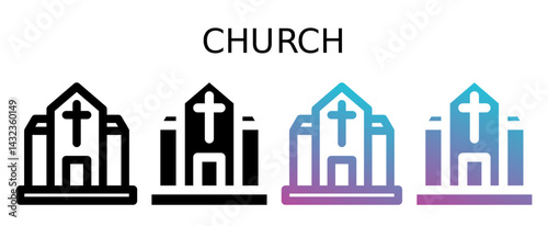 Fototapeta premium Church icon sheet with line, glyph, gradient multistyle collection of...