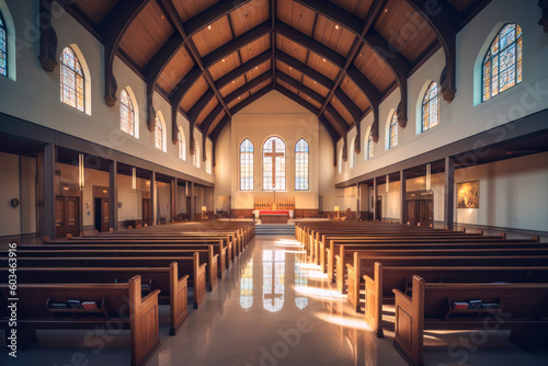 © Sunshower Shots, Obraz premium Church interior architecture. Generative AI