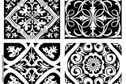 © Abdur, Fototapeta premium Church medieval windows set. Old gothic style architecture elements. Vector glyph illustration on white background.
