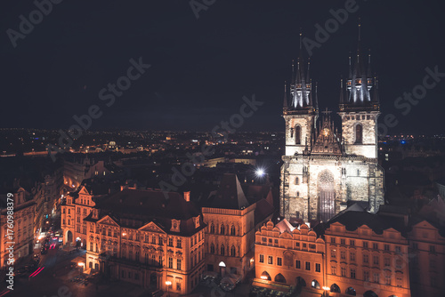 © kirill_makarov, Fototapeta premium Church of our Lady Before Tyn dominating Prague skyline at night