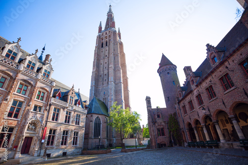 Fototapeta premium Church of Our Lady Bruges from below, Belgium